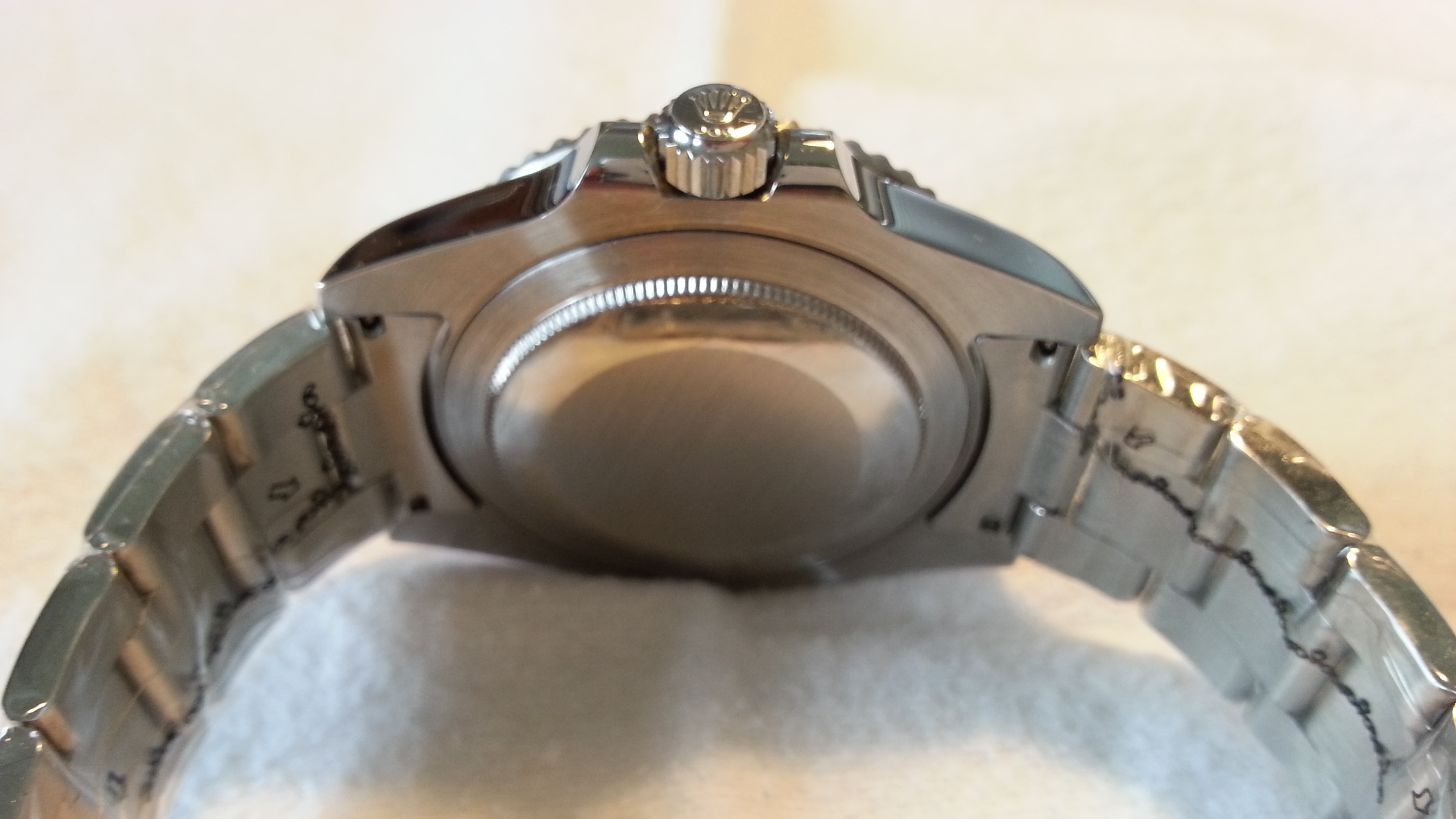 der Preis war zwar sehr hoch aber alle male gerechtfertigt, da die Unterschiede doch schon sehr hoch sind. Der Sekundenzeiger läuft dank des ETA !!! Kalibers ( wurde beim Uhrmacher geöffnet, kontrolliert und auch gleich wieder auf 10 ATM abgedrückt ) mit seinen echten 28´800 schwingungen welches schon beeindruckend ist und man sie nun nicht mehr am Verlauf des ruckelnden Sekundenzeigers sofort als Falsche erkennt ( natürlich nur wenn man so verückt ist wie ich und seit 20 Jahren wohl jede Fake-Generation in der Hand hatte).