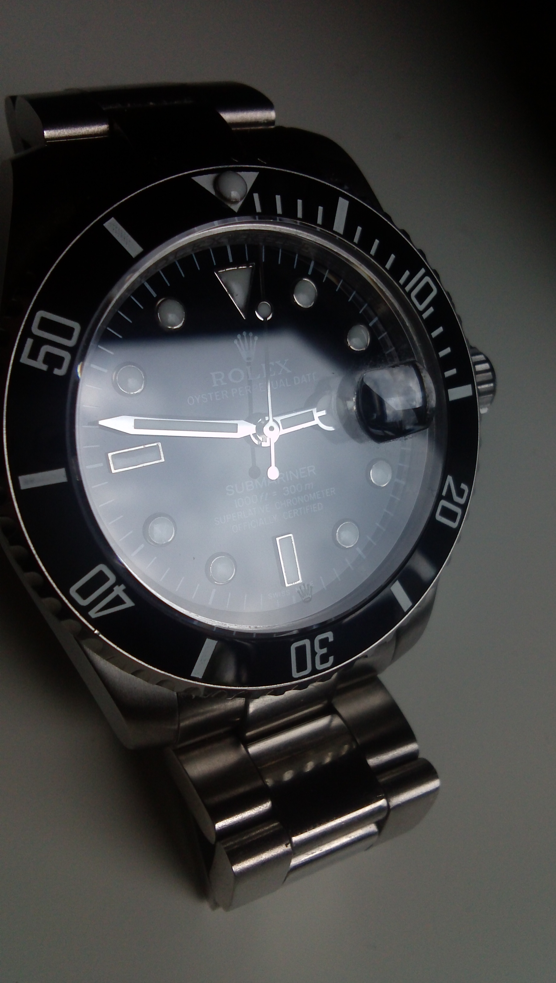 Was ich ziemlich schön finde das sie nachts blau leuchtet und die Rolex Krone im Glas eingraviert ist.