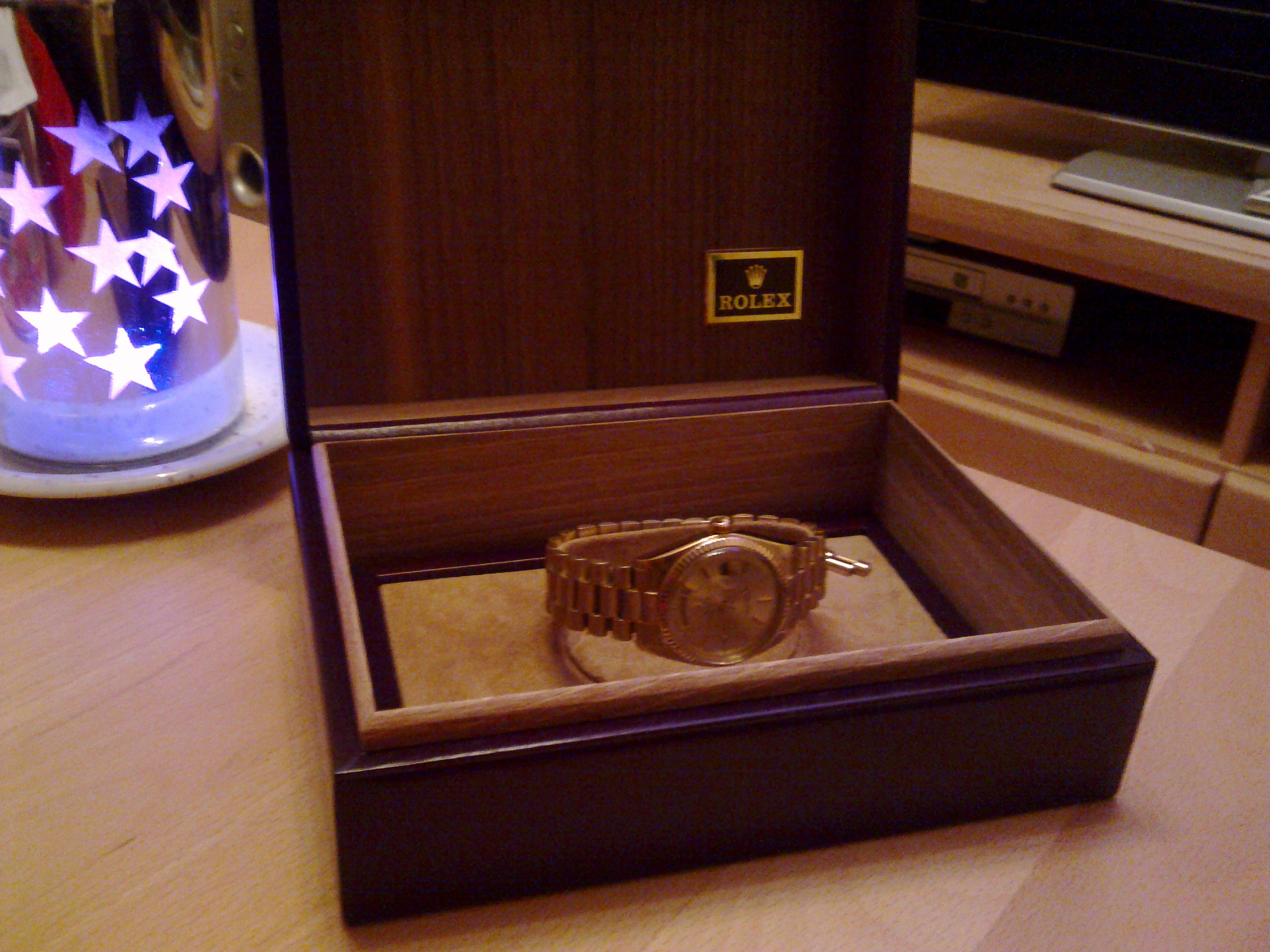 Konnte dort noch die Originalbox zu meiner Rolex Day-Date erwerben. Nun hab ich endlich einen repräsentativen Aufbewahrungsort für das gute Stück....wenn ich sie mal nicht trage ;)