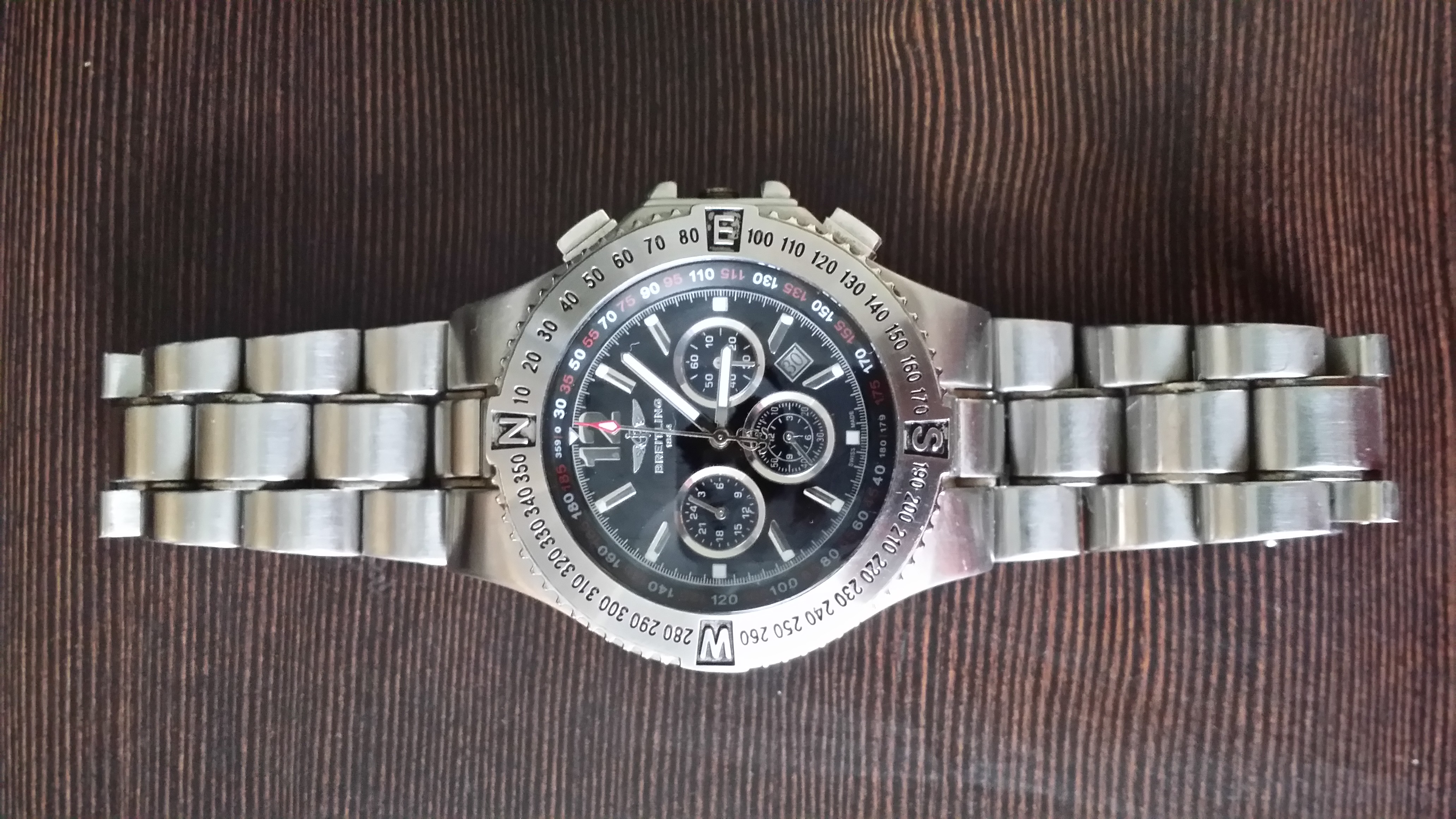 Ich besitze seit vielen Jahren eine schöne Breitling .....(evtl. eine Avenger Bauart ?? , aber die Lünette ist mit Kompass Rose und die Chronographen werden mit rechteckigen Knöpfen bedient.) , wenn ich die genaue Bezeichnung wüsste , wäre euch bestimmt schon geholfen , aber ich habe die Uhr fotografiert.