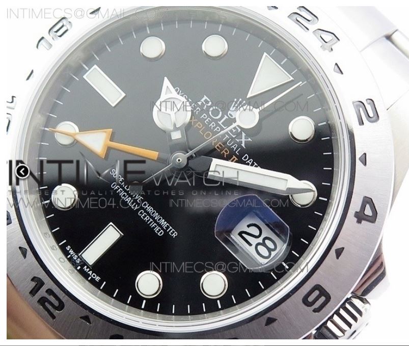 Hier meine EXP II CHS mit richtigem Zeigerstapel, GMT Zeiger ÜBER dem Stundenzeiger