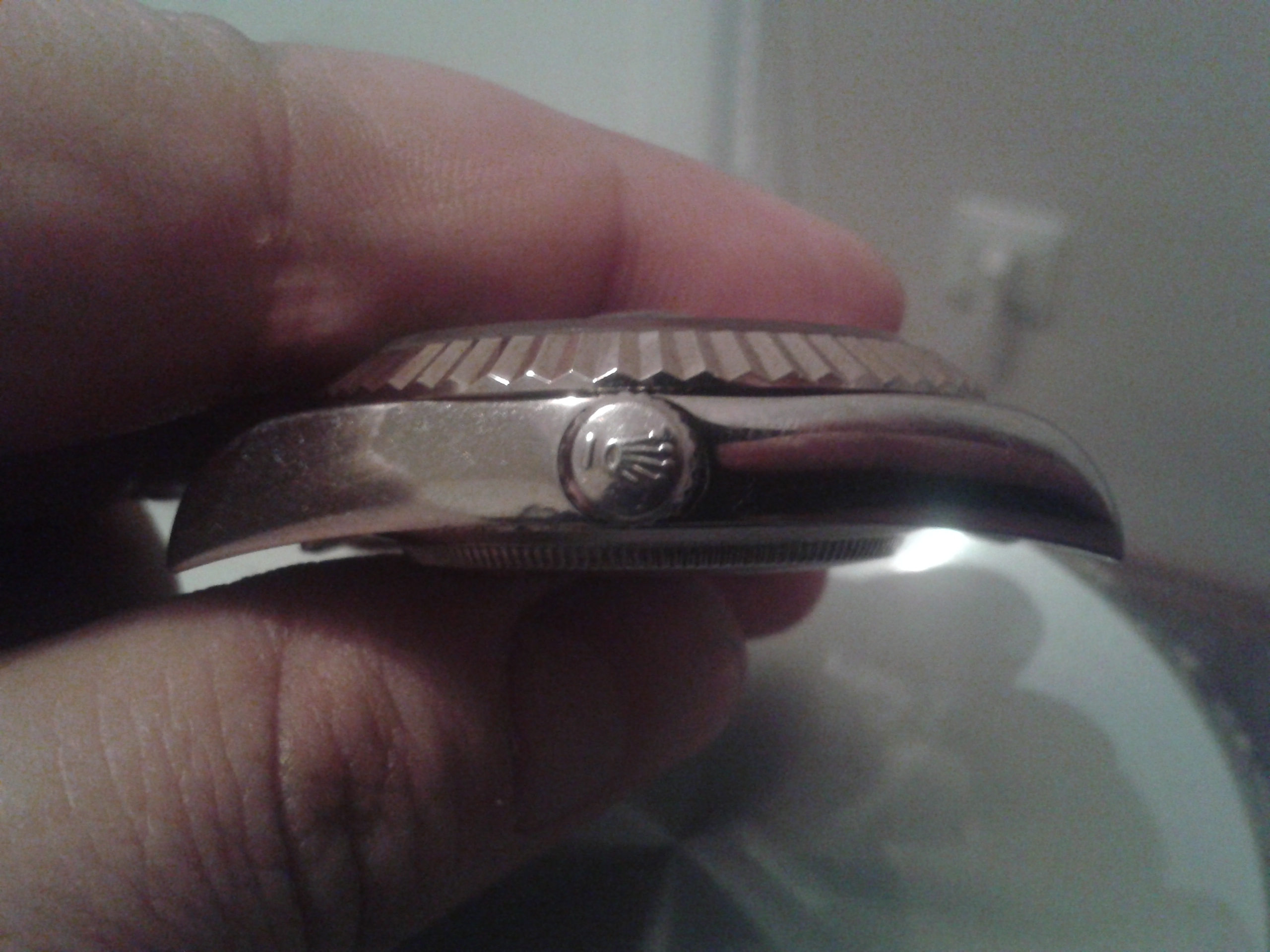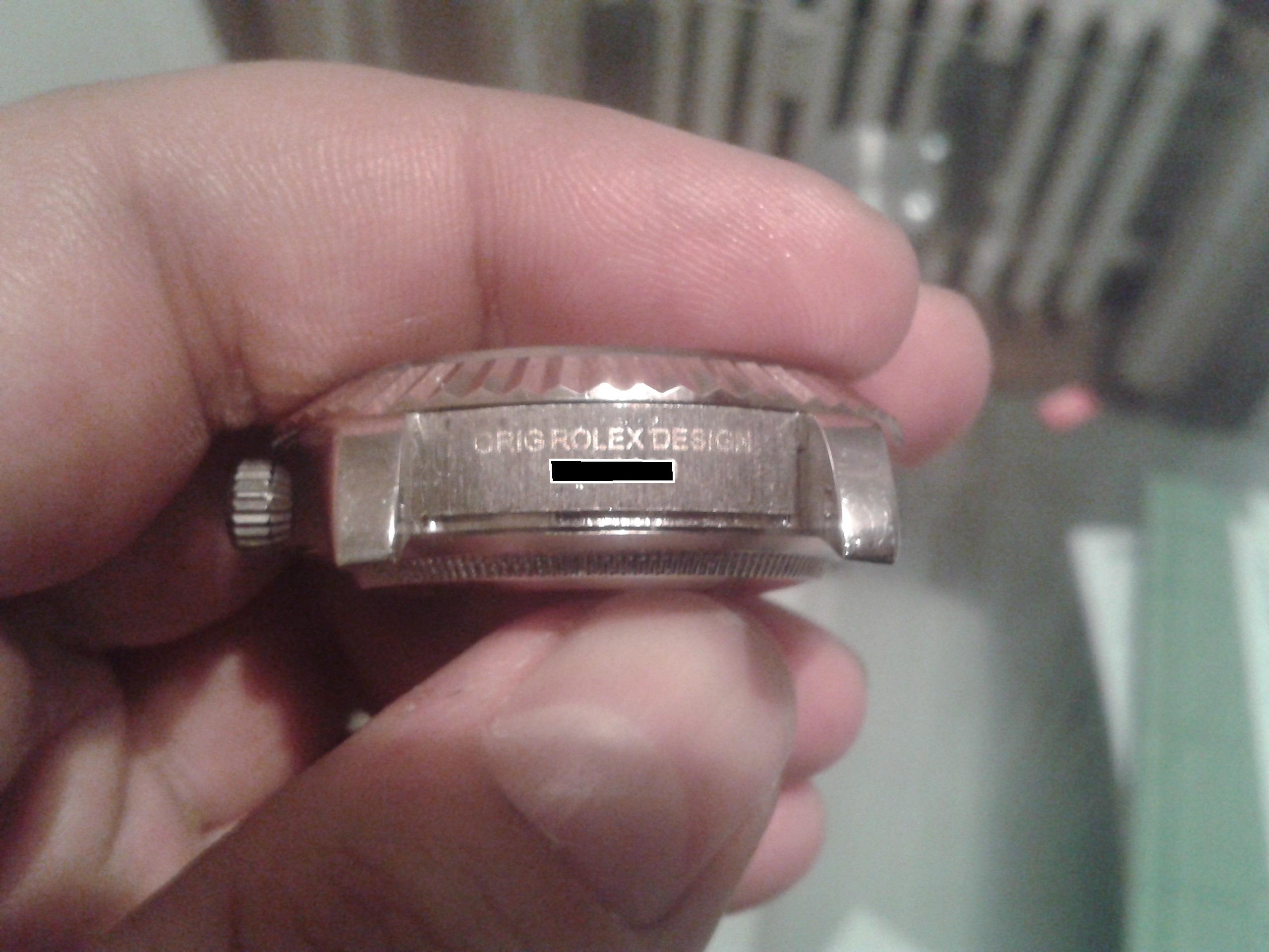 die serielsnummer von rolex ist diamant poliert.,, daher kann man es nur schwer foto grafieren.