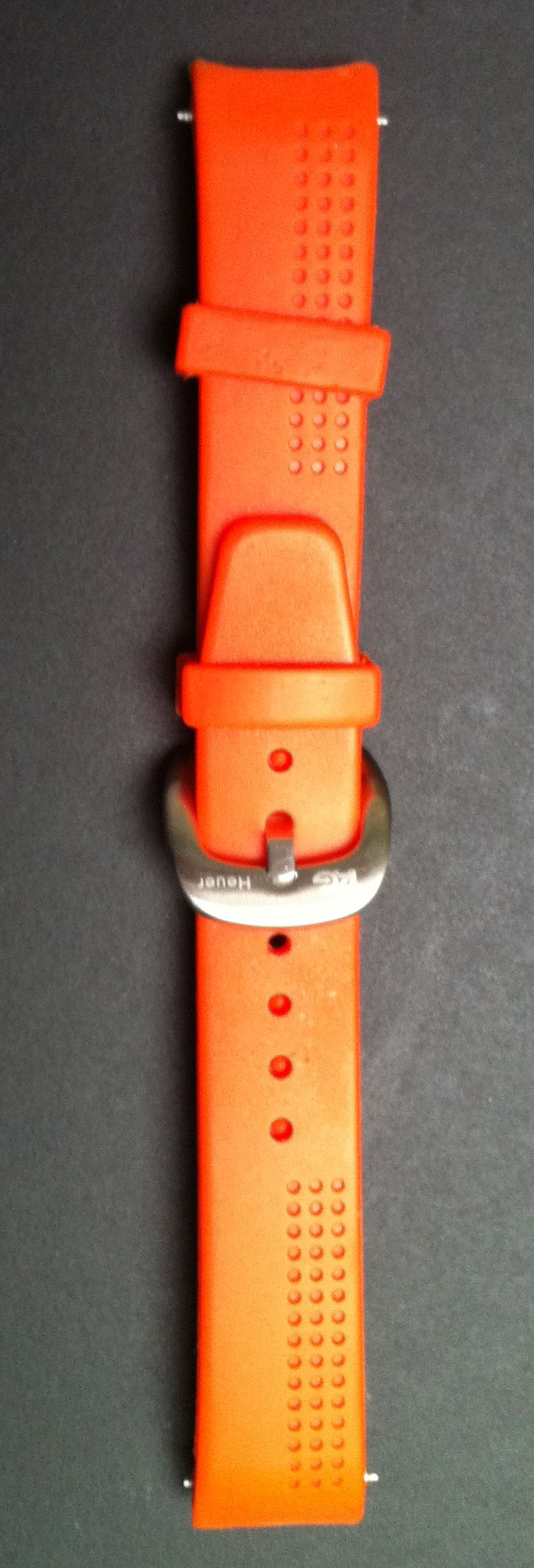 Suche eine Tag Heuer Edelstahl Dornschließe (mit Tag Heuer Logo), 18 mm Schließanschlußbreite, für ein Lederarmband. Biete im Tausch dazu ein orangefarbenes Kautschuk-Armband, passend für Tag Heuer Carrera mit 20 mm Bandanstoß.