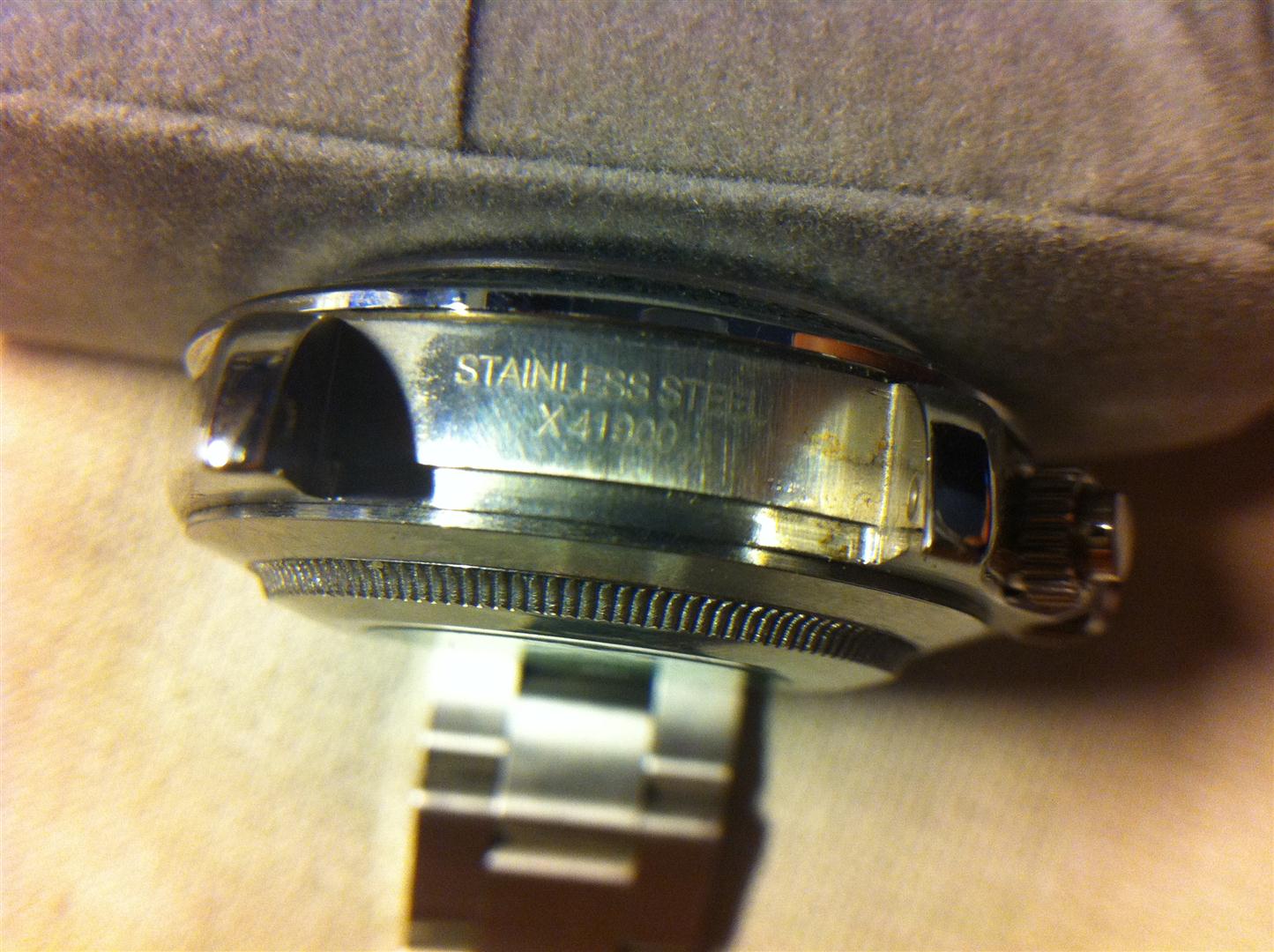 Achso das Glas der Uhr ist Saphierglas und im Glas unten bei der 6 ist eine Krone eingrafiert, alle Drücker sind verschraubt .