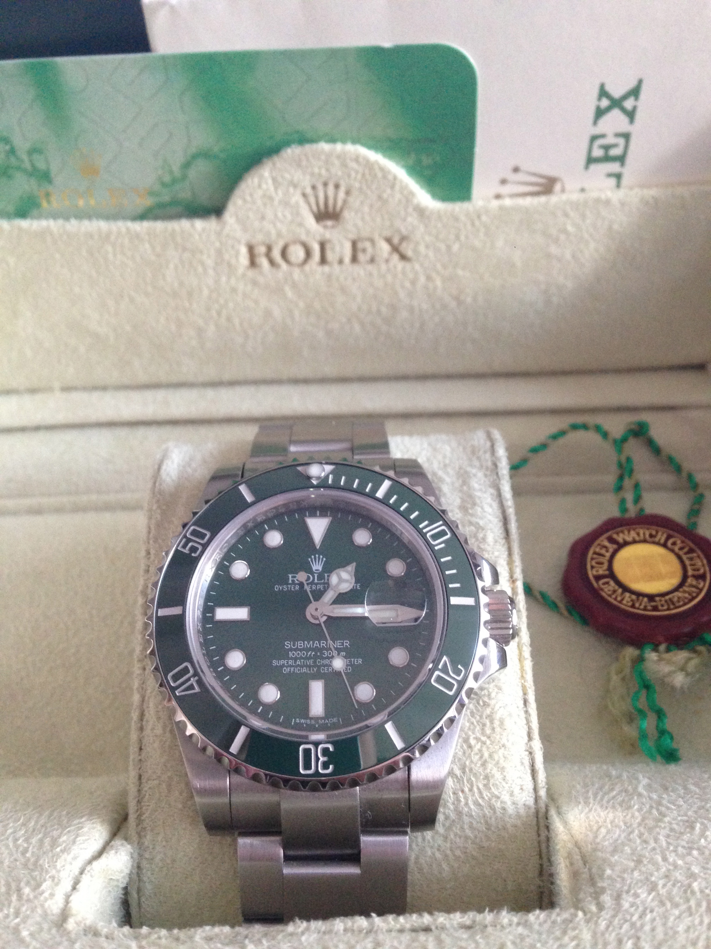 Submariner mit Swiss Eta 2836-2 Werk, korrekte Rehautgravur, 2,5 Fach entspieglte Lupe, 120 Klicks, und korrektem Zeigerspiel.