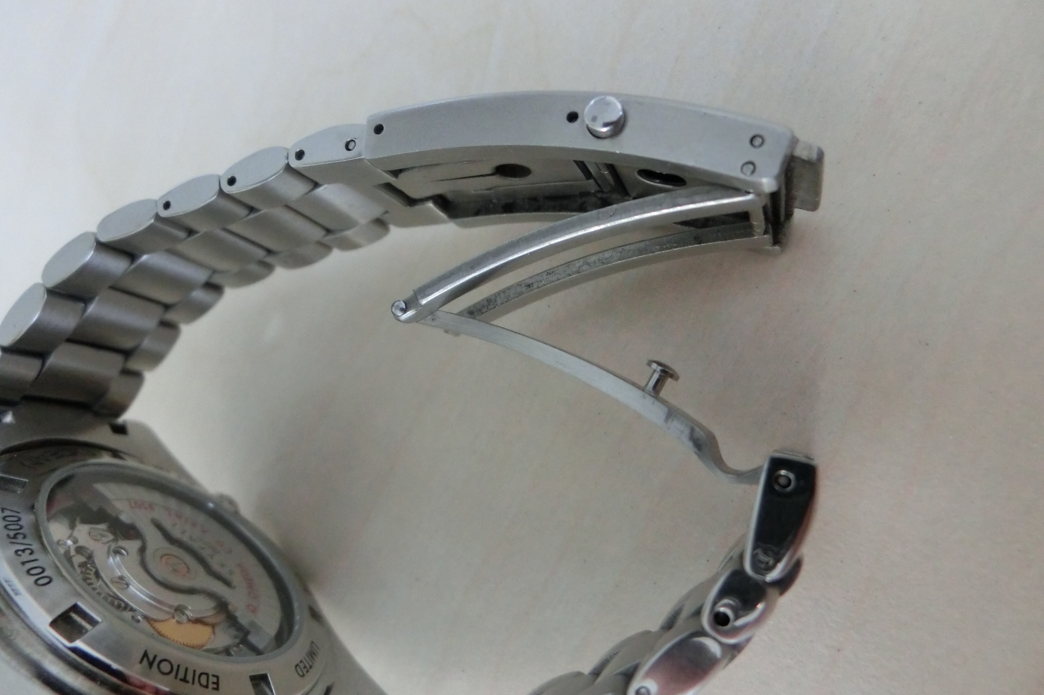 Die weißen Flecken auf dem Bild mit dem Zifferblatt sind Staubfussel auf dem Glas..