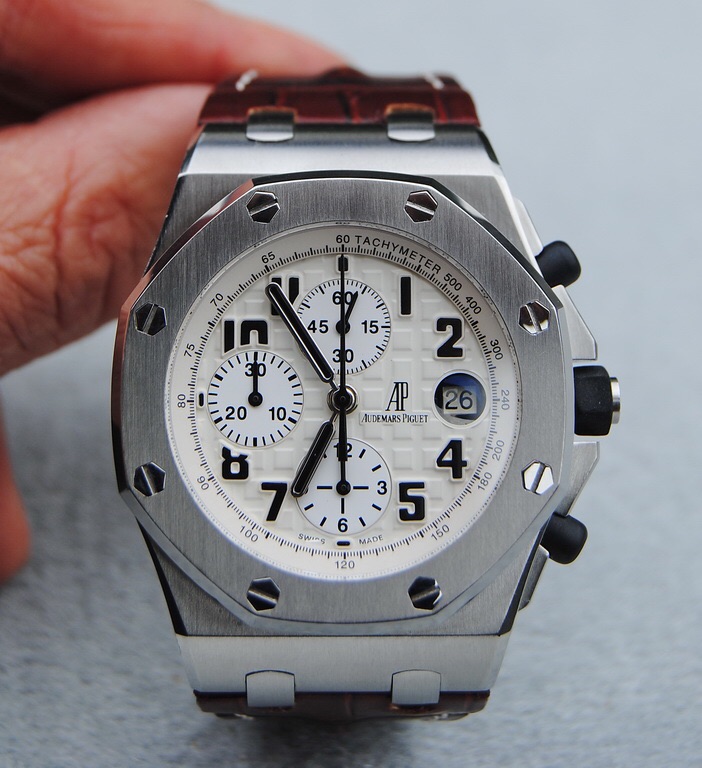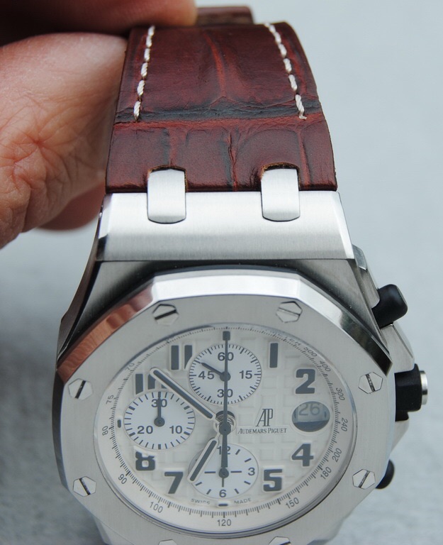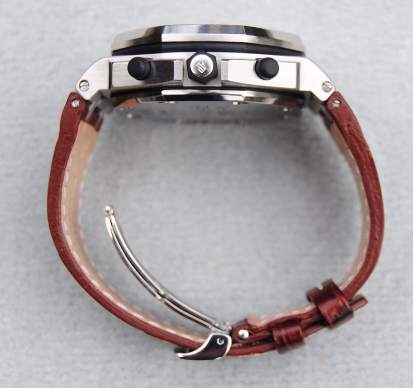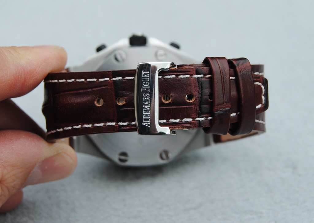Auf den Bildern mit braunem Hornback-Leder, hab aber auch noch ein schwarzes Silikon mit 2. Schließe, was auch perfekt passt. Alle Chronos laufen perfekt!