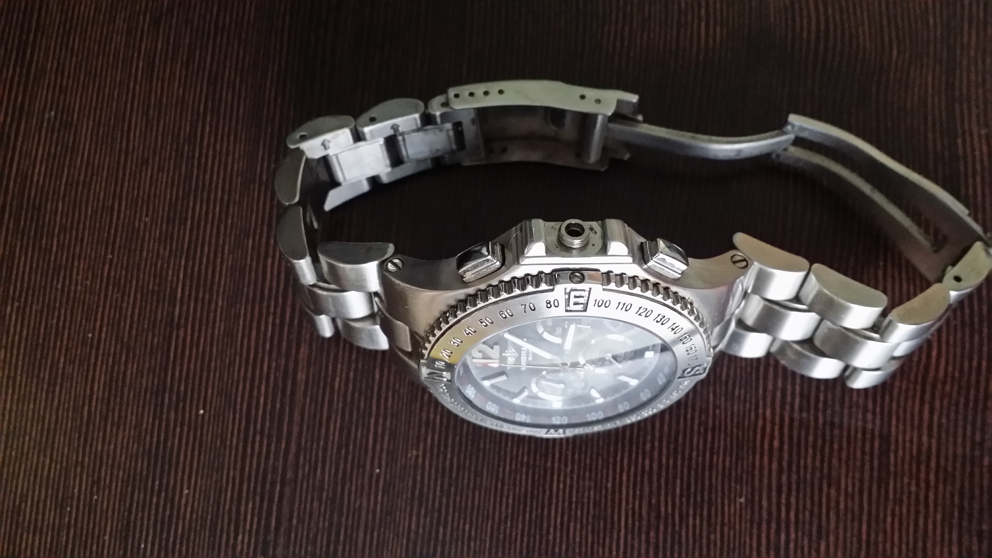 Das Automatikwerk funktioniert immer noch , die Chronographen auch. Verstellen kann ich sie wegen der fehlenden Krone und des abgebrochenen Stiftes nicht mehr.