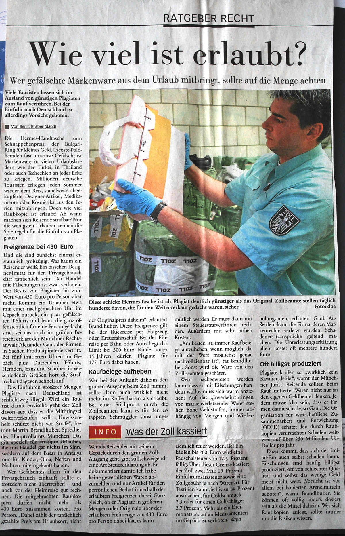 Damit das mal klar ist und ich hier kein Blödsinn schreibe: Ein Zeitungsbericht der Frankfurter Neuen Presse, zufällig gelesen Mitte Juni, Ratgeber Recht.