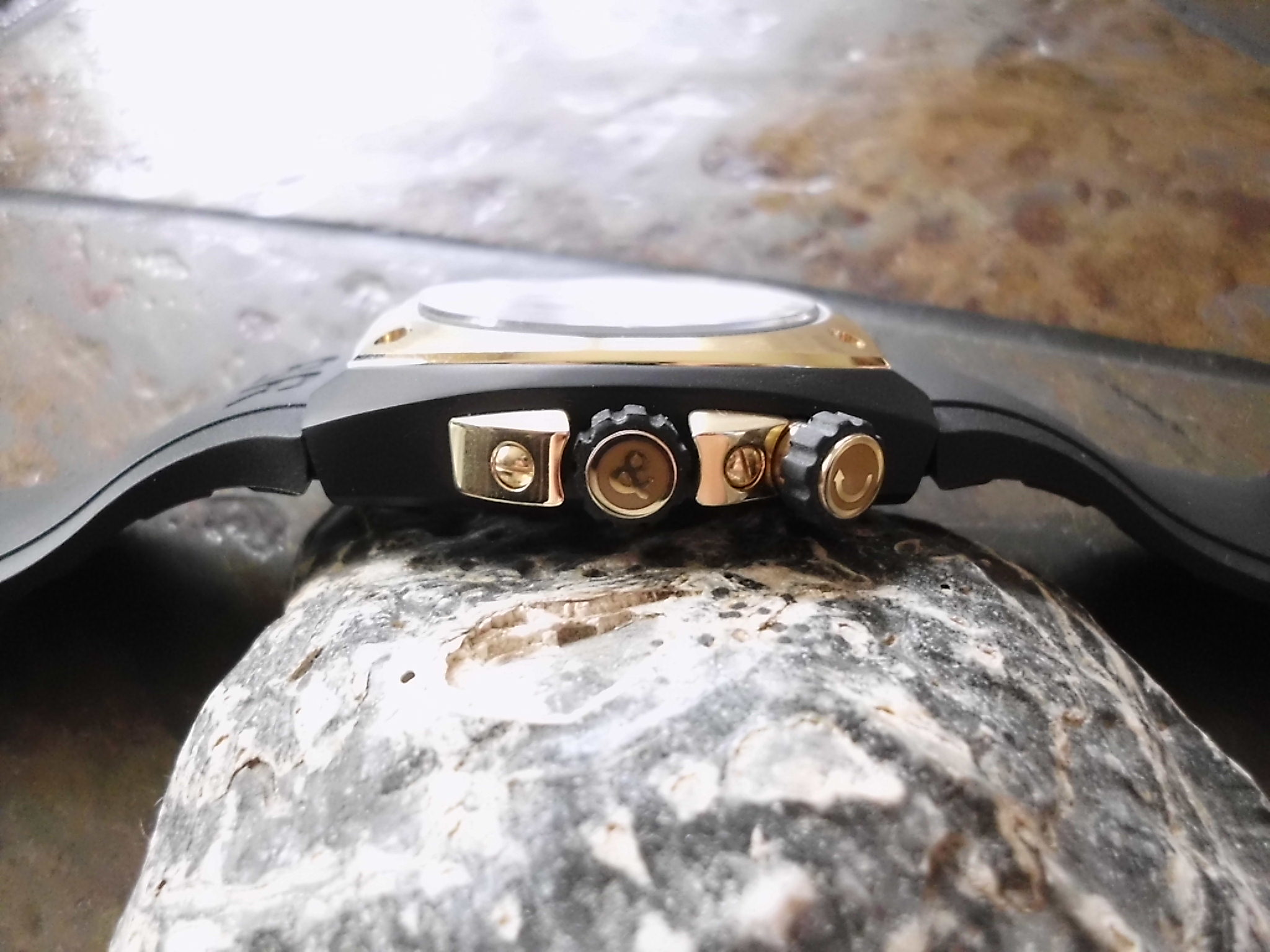 PVD Black/18K Plated YG SS Case, Numeral/Stick Lume Markers ,with PVD buckle