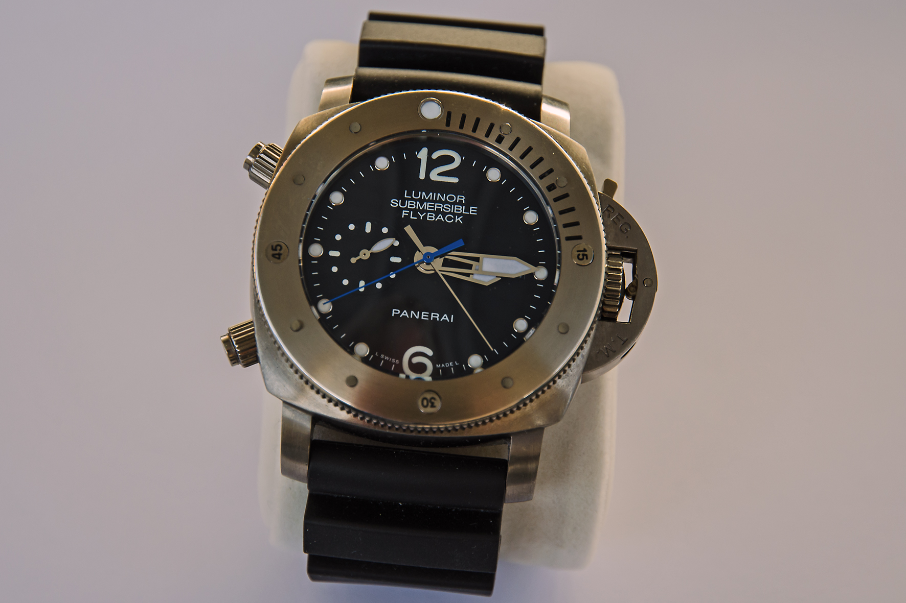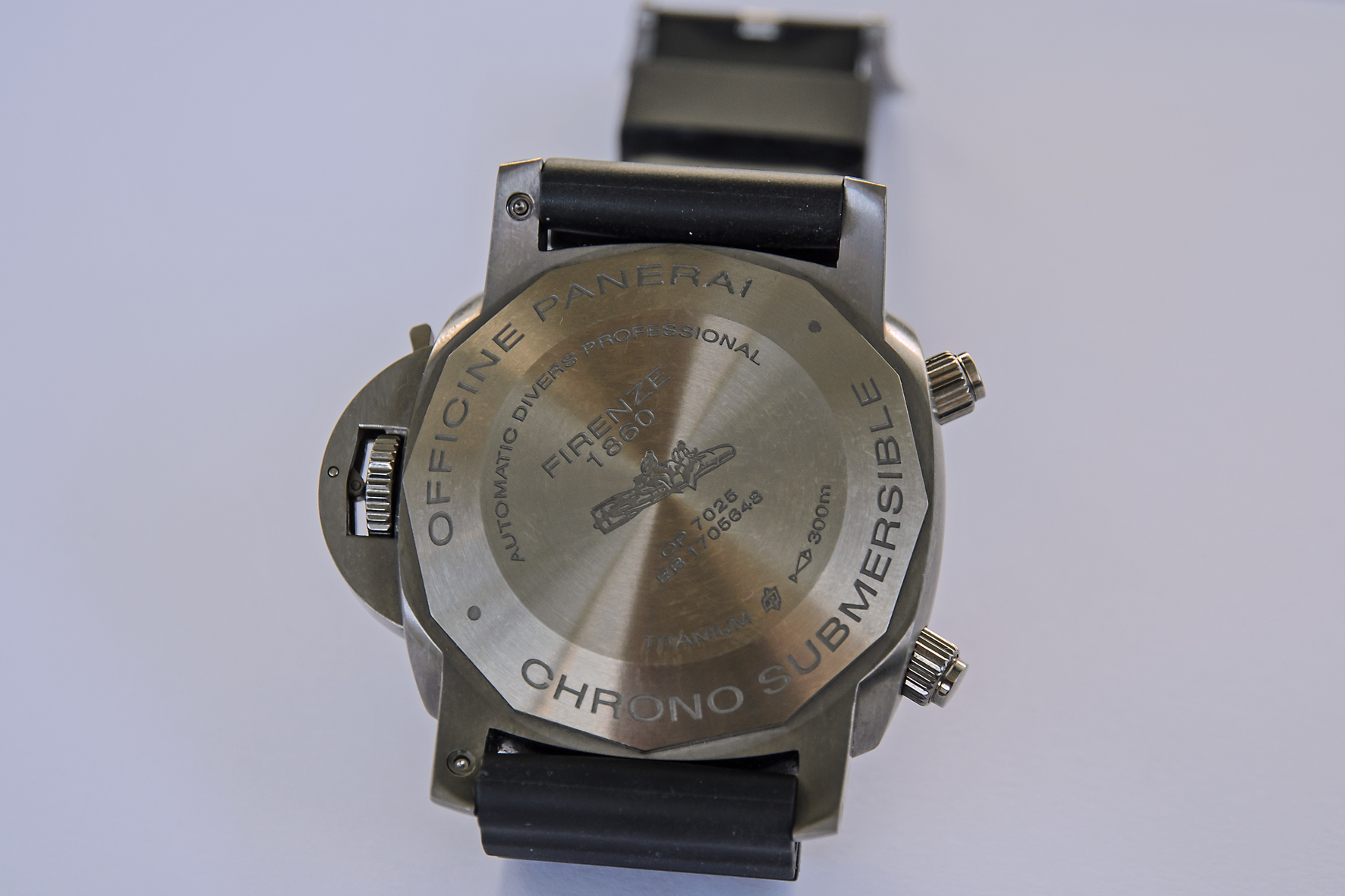 Das genaue Gegenteil in Hinblick auf eine Kopie von einem Originalmodell ist die PANERAI, die ich zusammen mit der HEUER in Shanghai gekauft habe. Es handelt sich um eine wirklich exakte Kopie der Luminor Submersible 1950, 3 Days Chrono,Flyback Automatic Titanio-47mm. Ich habe das Teil schon zweimal im Original gesehen und auch auf der Homepage von Panerai abgeglichen, ich konnte einfach nichts entdecken, was auch nicht mit dem Original übereinstimmt.