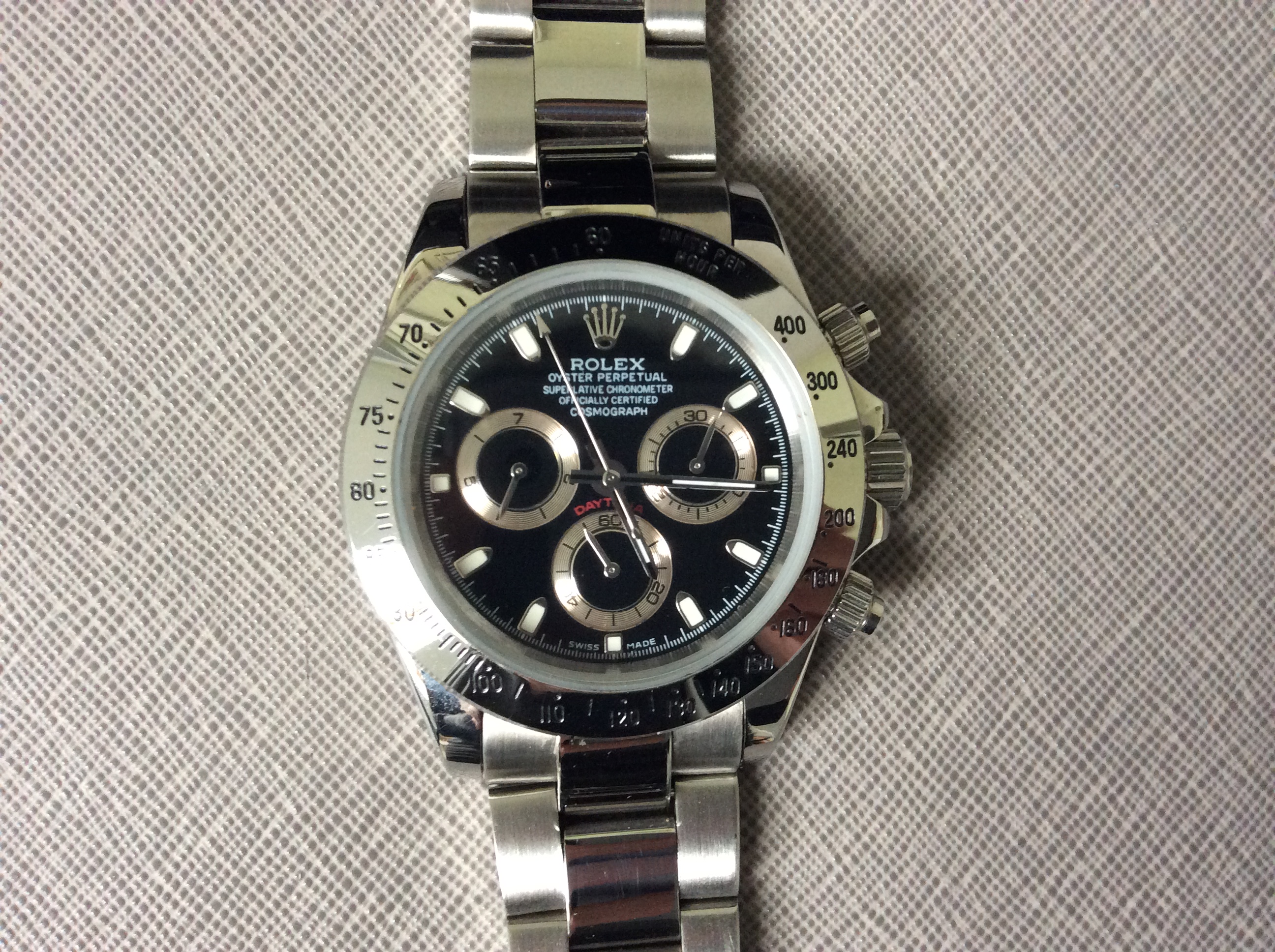 Ich suche für meine Rolex Daytona ein neues Zifferblatt (siehe Bild), da das verbaute nicht dem Original entspricht.