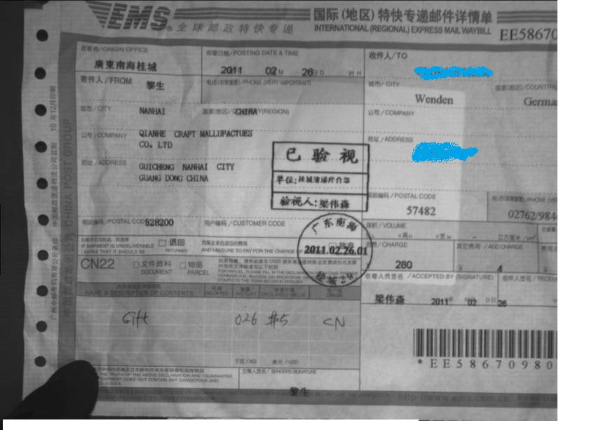 Bei GDSK war noch ein Bild von dem Packzettel der von EMS stammt..(hier im Anhang)
