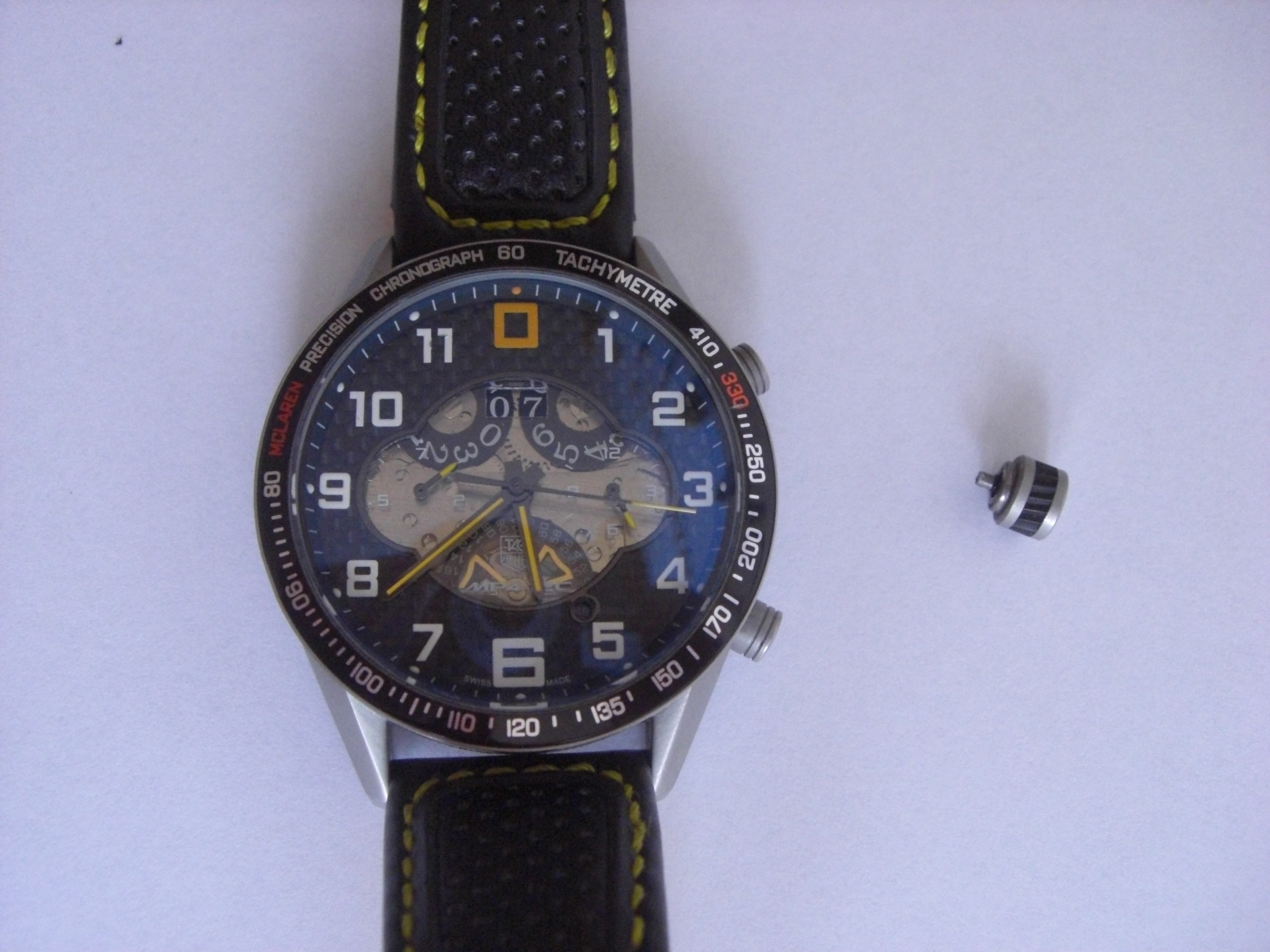 Bei meiner Tag Heuer MP4 ist leider die Aufzugswelle und die Krone abgebrochen.
