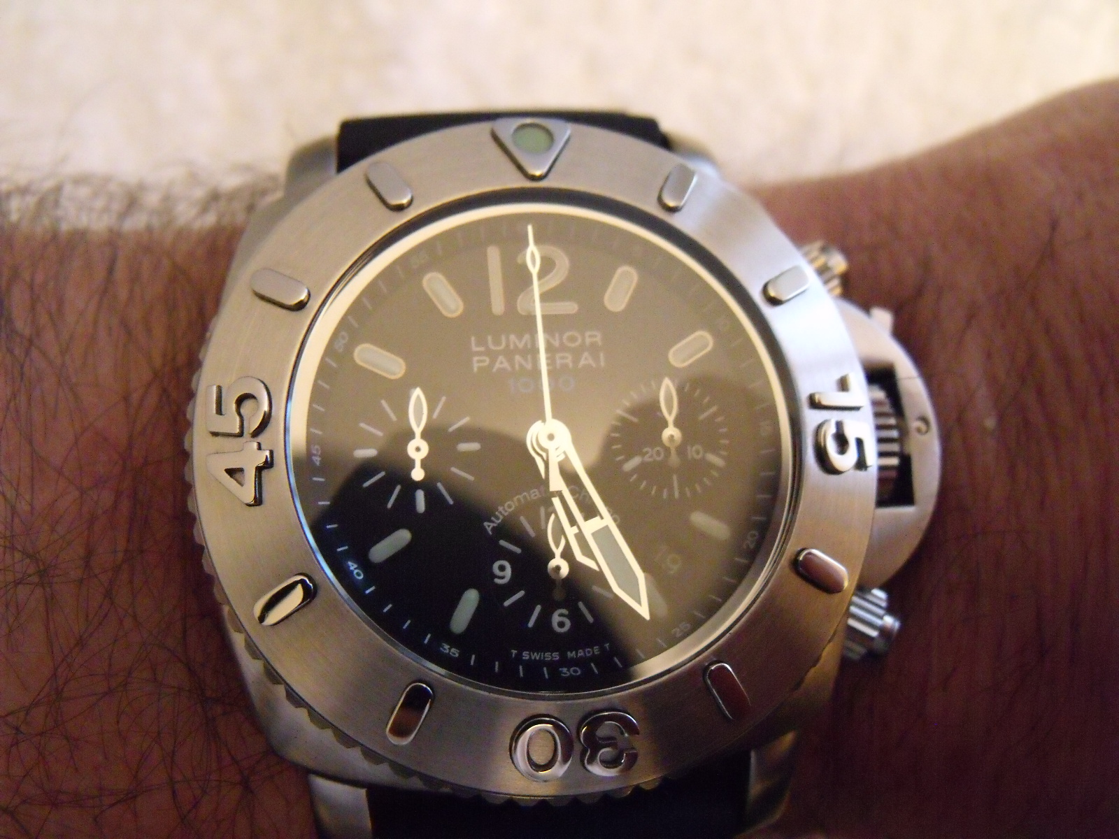 habe sie beim Uhrmacher auf 20 ATM abdrücken lassen und sie ist dicht, war mit ihr schon Tauchen und eine echte Outdooruhr für alle Zwecke, da braucht man keine Zusatzgewichte mehr die drückt einen bei dem Gewicht auf den Boden aber einfach nur geil und das Kaliber läuft auch noch auf 2 sek. pro Tag genau, was will " mann " mehr
